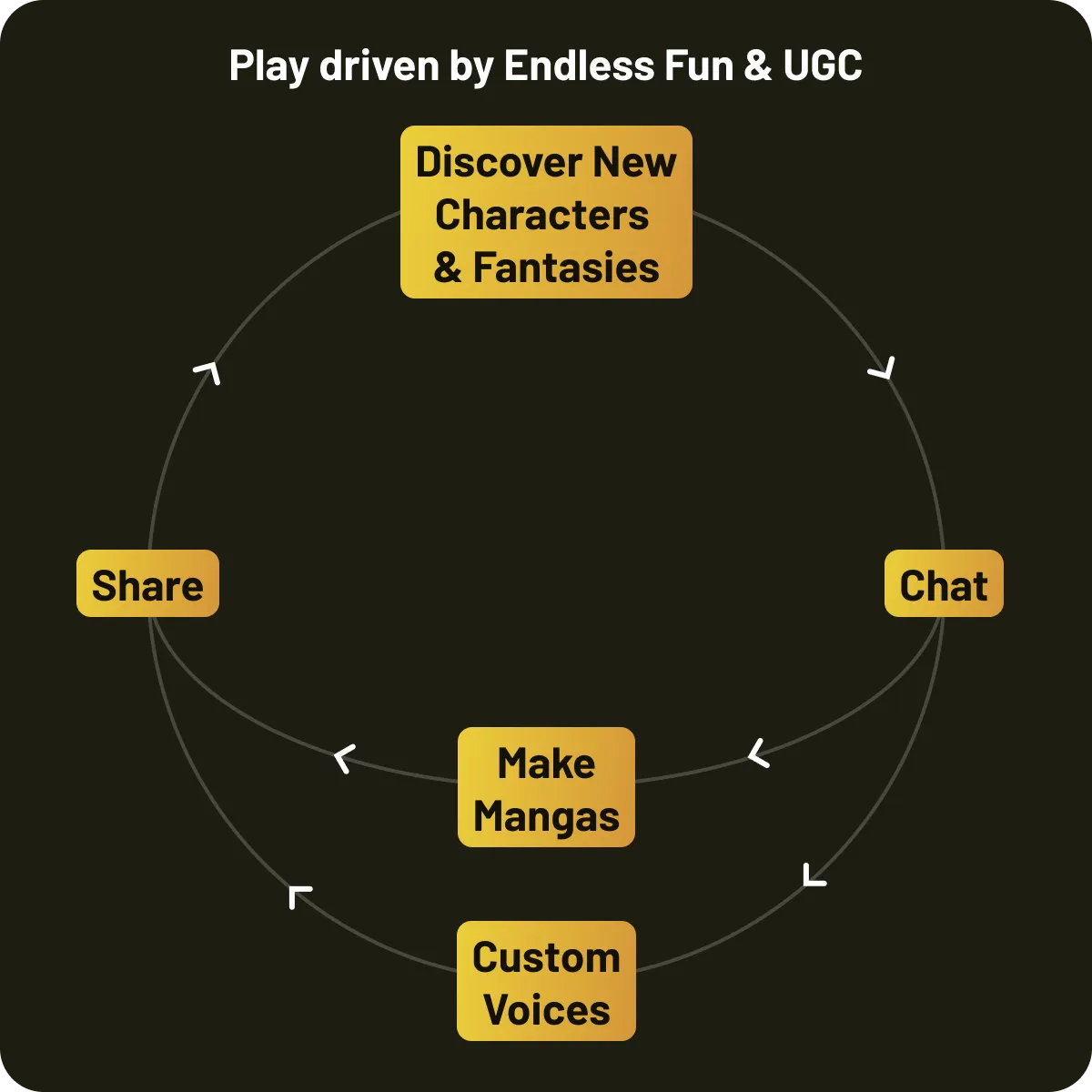 Driven by endless new content that’s UGC (aka characters and fantasies made by the community) — players will never get bored because creativity will never run out