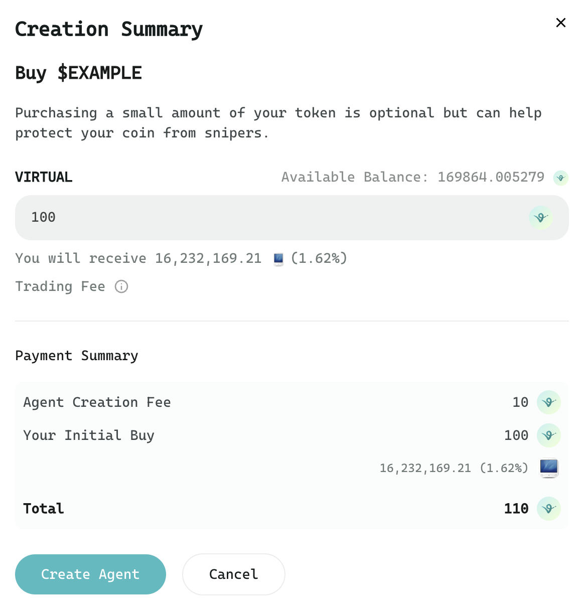 * [ ] Does your deployer wallet have enough $VIRTUAL token to buy up the intended supply?